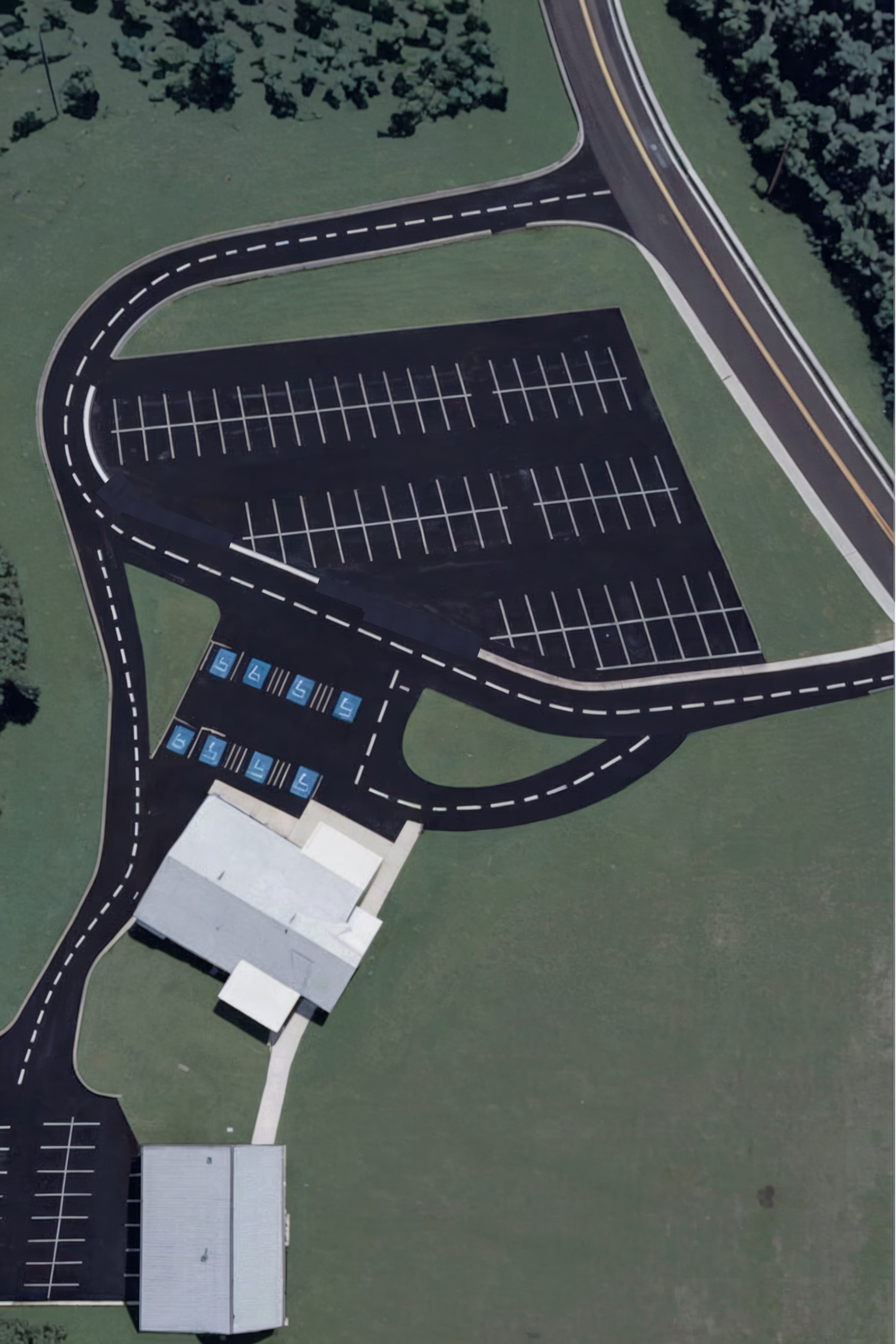 New asphalt or rock parking lot with more well-paved handicap spots. Additional new parking lot behind the CYC for youth.